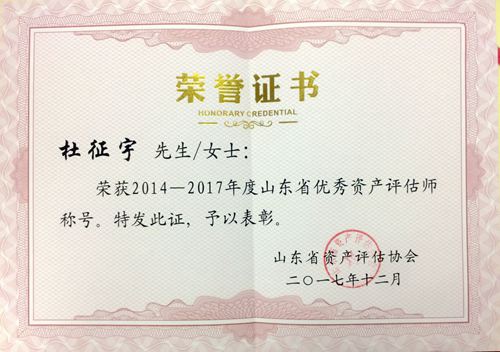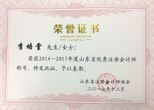 我所獲得“2014-2017年度山東省先進會計師事務所”榮譽稱號,山東同泰資產評估有限公司獲得“2014-2017山東省先進資產評估機構”榮譽稱號。同時,李培堂獲得“2014-2017年度山東省優秀注冊會計師”稱號,杜征宇獲得“2014-2017年度山東省優秀資產評估師”稱號。