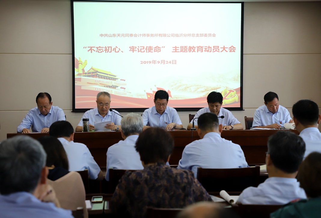 日前,中共山東天元同泰會計師事務所黨總支召開動員大會,在全所范圍內全面啟動“不忘初心、牢記使命”主題教育活動。會上傳達學習了注冊會計師行業黨委和市行業黨委的有關文件,公布了事務所 “不忘初心、牢記使命”主題教育活動實施方案,總支書記裴波苓作了主題教育工作部署,對開展各項活動進行了安排。同時,組織全體黨員進行第一次集中學習。