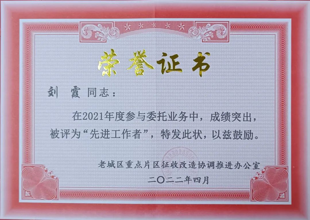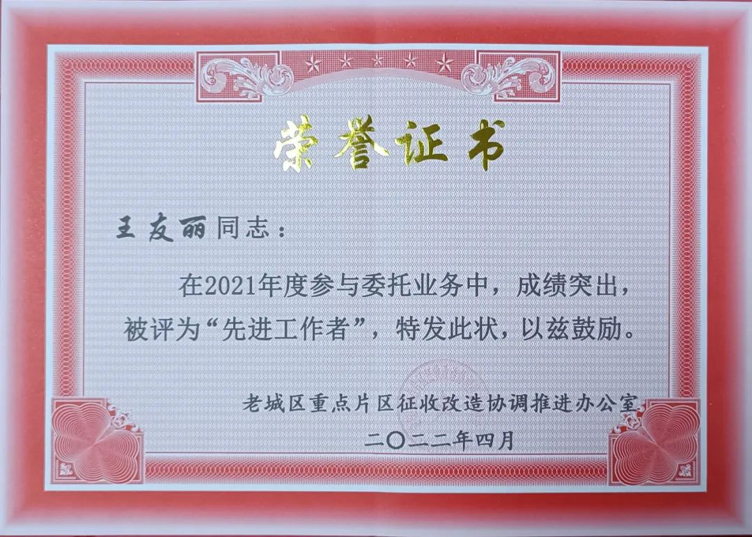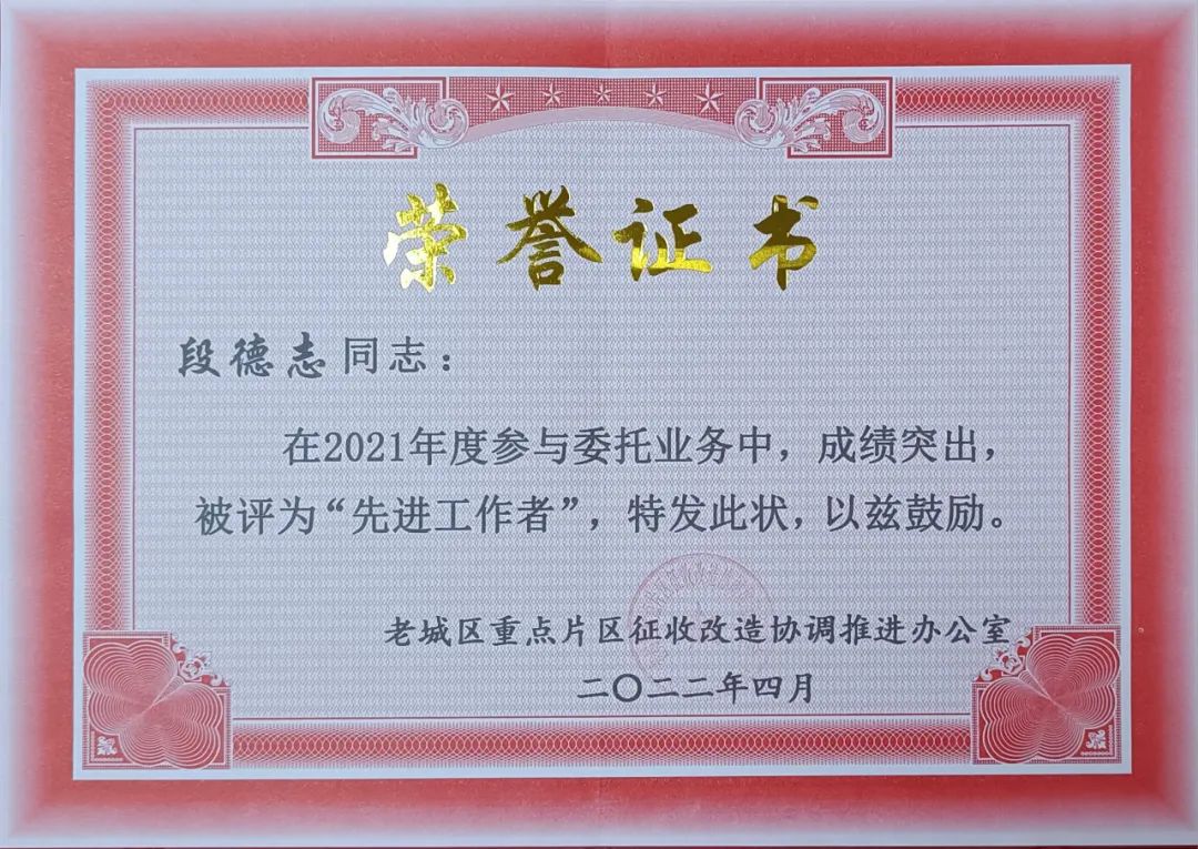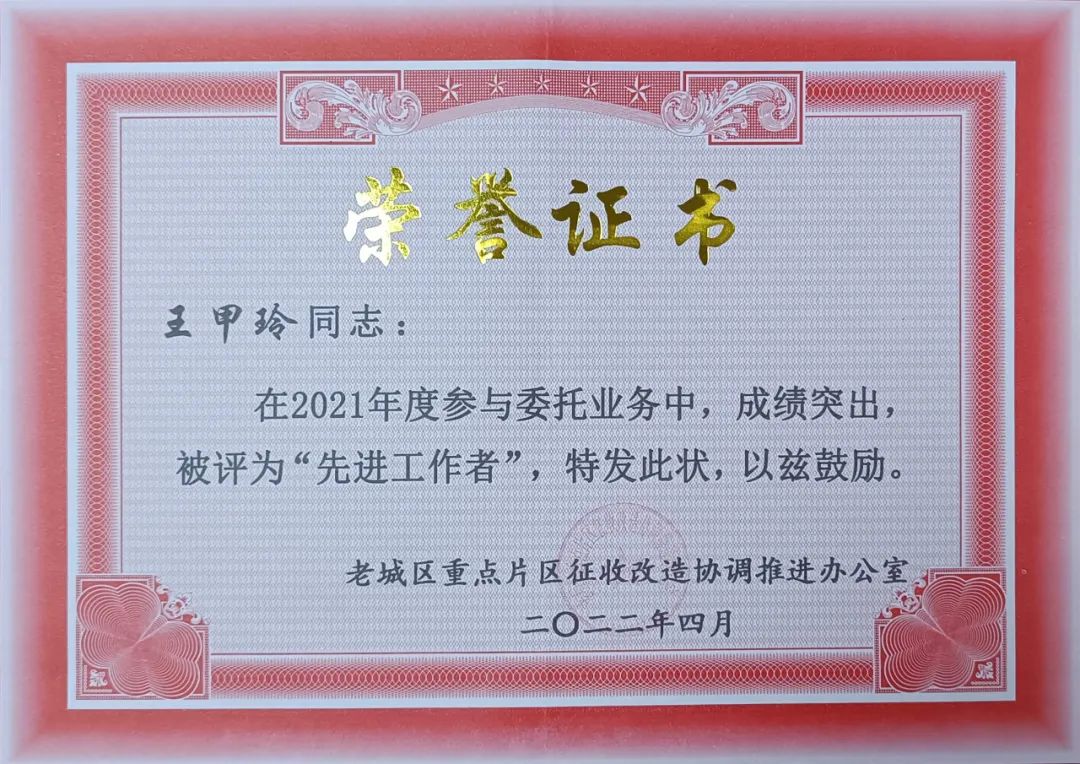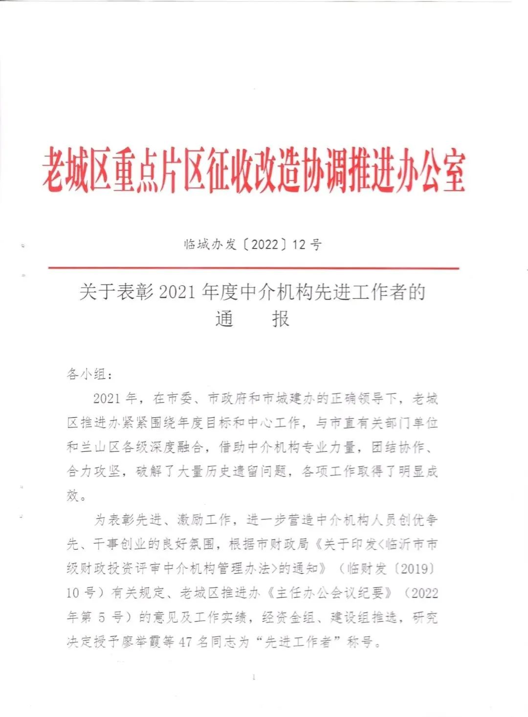 近日,臨沂市老城區重點片區征收改造協調推進辦公室對2021年度中介機構先進工作者進行了表彰,我集團張森、隋金凱、劉霞、王甲玲、段德志、王友麗、諸葛奉云、孫運艷共8名同志被授予“先進工作者”榮譽稱號。 臨沂市老城區重點片區征收改造協調推進辦公室負擔著我市老城區的征收改造和開發建設工作,我集團作為改造建設工作的中介機構秉承著獨立、客觀、公正的執業準則,積極開展財務審計、拆遷評估、預算編制、工程咨詢、造價咨詢等各項業務。多年來,我集團各執業機構的工作人員始終堅持以精益求精的專業精神、積極飽滿的工作熱情和嚴謹扎實的執業作風來開展各項工作,“同泰”集團和“同泰”人先后多次獲得臨沂市政府、市住建局等政府部門和社會各界的表彰好評,為努力推動臨沂市經濟社會發展貢獻自己的專業力量。