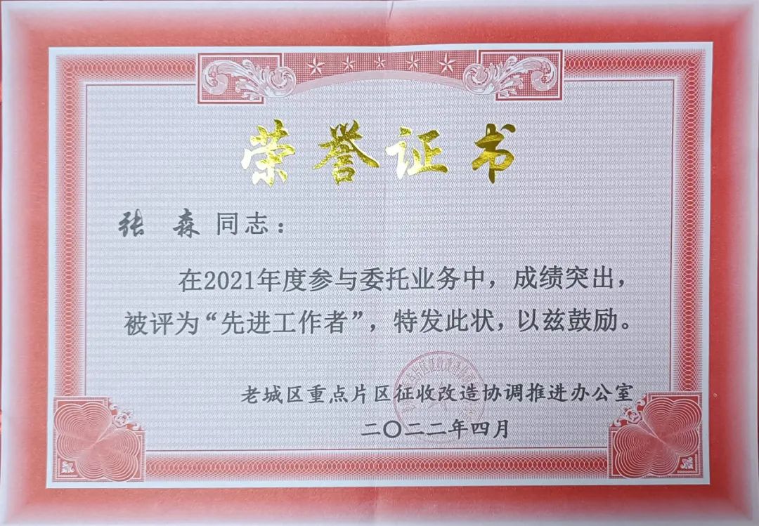 | 創優爭先、干事創業--我集團張森等8名同志被市老城區推進辦授予“先進工作者”稱號 |