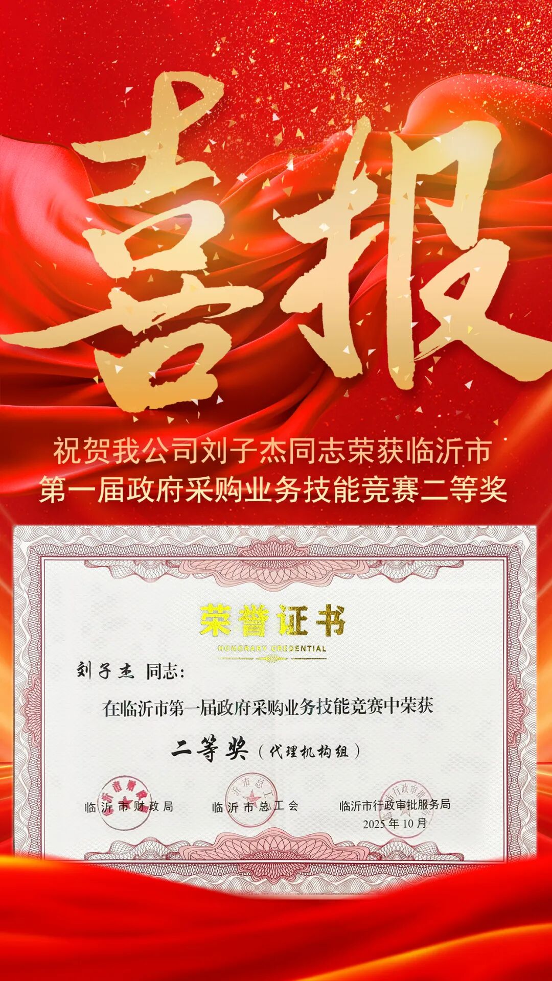 | 喜報|祝賀我公司劉子杰同志榮獲臨沂市第一屆政府采購業務技能競賽二等獎 |