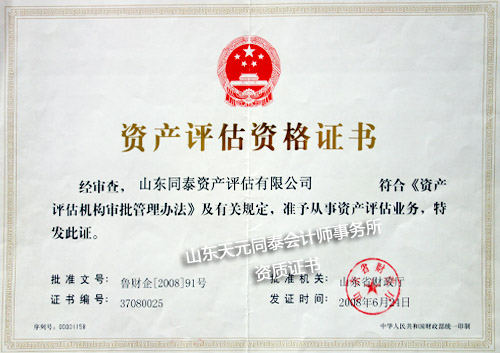 資產評估資格證書